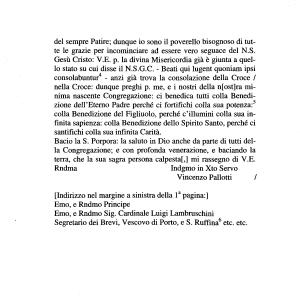 nella Croce : dunque preghi p . me , e i nostri della n [ ost ] ra minima nascente Congregazione : ci benedica tutti colla Benedizione dell ’ Eterno Padre perché ci fortifichi colla sua potenza : 5