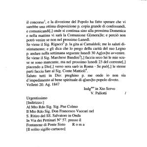 Velletri 20 . Ag . 1847 hidgmo in Xto Servo
