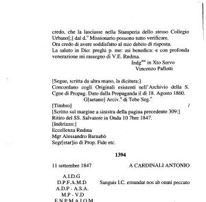 credo , che la lasciasse nella Stamperia dello stesso Collegio Urbano [;] dal d .° Missionario possono tutto verificare .