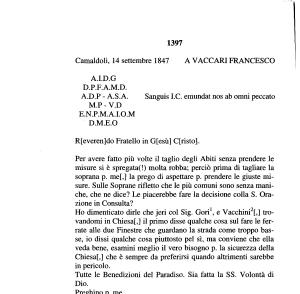 1397 Camaldoli , 14 settembre 1847 A VACCARI FRANCESCO