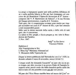 La prego a impegnarsi quanto può nella perfetta diffidenza di sé , e nella perfetta fiducia in Dio per fare ristampare col concorso dei pii Benefattori l ’ Opuscolo Invenzioni di St0 Amore - composto dal V . P . Bartolomeo da Saluzzo2 3 , e la sua Novena