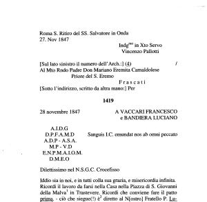 Roma S . Ritiro del SS . Salvatore in Onda 27 . Nov 1847