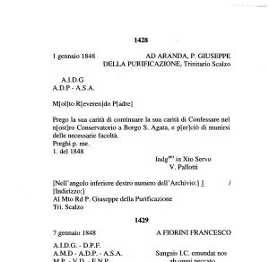 Prego la sua carità di continuare la sua carità di Confessare nel n [ ost ] ro Conservatorio a Borgo S . Agata , e p [ er ] ciò di munirsi delle necessarie facoltà .