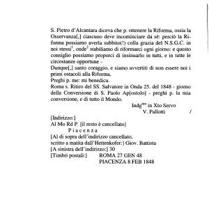 Roma s . Ritiro del SS . Salvatore in Onda 25 . del 1848 - giorno della Conversione di S . Paolo Ap [ ostolo ] - preghi p . la mia conversione , e di tutto il Mondo .
