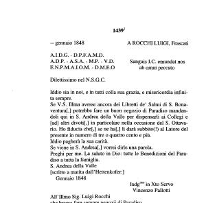 1 Dal libro “ Copie autentiche delle lettere di S . Vincenzo Pallotti ” p . 195 ; fa parte di n ° 7 lettere inviate a Luigi Rocchi , autenticate dal notaio Domenico Monti il 15 luglio 1861 .