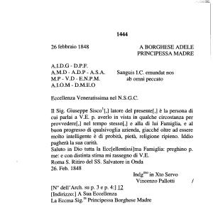 Roma S . Ritiro del SS . Salvatore in Onda 26 . Feb . 1848