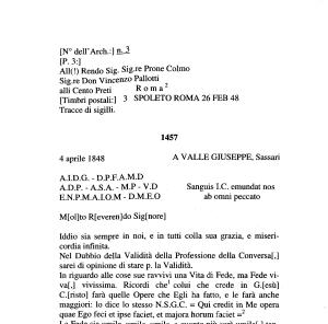 Sig . re Don Vincenzo Pallotti alli Cento Preti Roma [ Timbri postali :] 3 SPOLETO ROMA 26 FEB 48