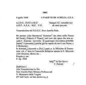 6 aprile 1848 A PARIS SUOR AURELIA , O . S . A .