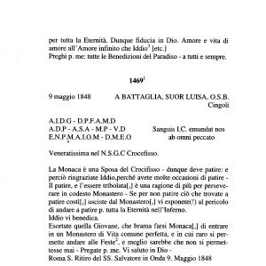 Esortate quella Giovane , che brama farsi Monacai ,] di entrare in un Monastero di Vita comune perfetta , e in cui raro si permette andare alle Feste12 , e meglio sarebbe che non si permettesse mai - Pregate p . me . Vi saluto in Dio -