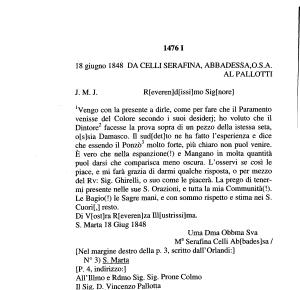 18 giugno 1848 DA CELLI SERAFINA , ABBADESSA , O . S . A .