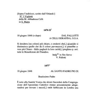 1 Risposta del Pallotti scritta nello spazio vuoto prima della firma di Serafina Celli .