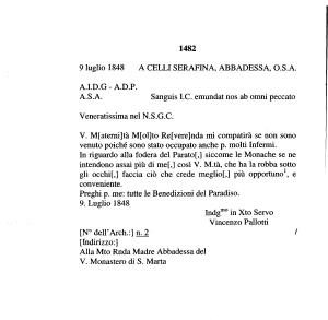 9 luglio 1848 A CELLI SERAFINA , ABBADESSA , O . S . A .