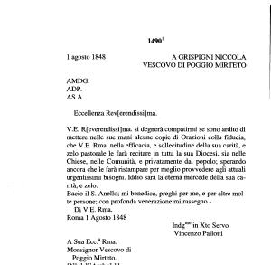 Sulla base di queste osservazioni , possiamo supporre che la 1 . n ° 1489 fosse una bozza per il Vescovo di Poggio Mirteto , fatta dal Pallotti , e riscritta dal Vaccari .