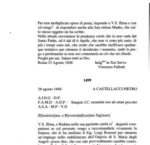 Santo Padre , ed è dal dì 6 Aprile , che non vi sono più stato : di più i tempi sono tali , che credo che sarebbe inefficace qualunque tentativo per ottenere il desiderato / aumento , onde la prego a perdonarmi se non oso contentarla in ciò che mi chiede .