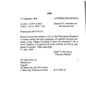 Procuri di non fare perdere a S . E . la Siga Principessa Borghese il sommo merito che può acquistare con qualche limosina ajutando il Sig . Filippo Cicchimi ,] 1 latore del presente !,] che si