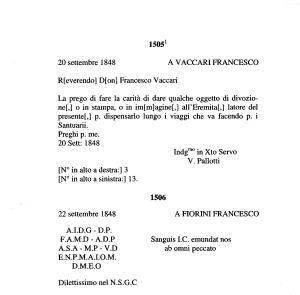 20 settembre 1848 A VACCARI FRANCESCO Reverendo ] D [ on ] Francesco Vaccari
