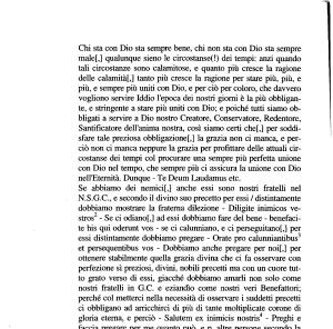 Santificatore deH ' anima nostra , così siamo certi che [,] per soddisfare tale preziosa obbligazione !,] la grazia non ci manca , e perciò non ci manca neppure la grazia per profittare delle attuali circostanse dei tempi col procurare una sempre più perfetta unione con Dio nel tempo , che sempre più ci assicura la unione con Dio nell ' Eternità . Dunque - Te Deum Laudamus etc . Se abbiamo dei nemici !,] anche essi sono nostri fratelli nel N . S . G . C ., e secondo il divino suo precetto per essi / distintamente