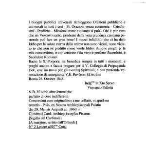 Concordant cum originalibus a me collatis , et apud me retentis - Pisis , ex Nostro Archi episcopali Palatio die 29 . Mensis Augusti an . 1860 . = C [ osimo ] Card . Archiep [ iscop ] us Pisanus [ Sigillo del Cardinale ] [ A margine , scritto daU ' Orlandi :] N ° 2 Lettere alfEmo Corsi