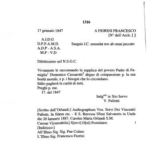 Vivamente le raccomando la supplica del povero Padre di Famiglia1 Domenico Cassarotti12 degno di compassione p . la sua
