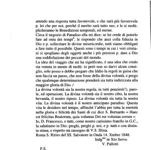 Colla presente metto nelle sue mani una piccola quantità di libretti , e stampe divote e scapolari , colla fiducia che li5 farà servire alla maggior gloria di Dio , e vantaggio delle anime . La S .