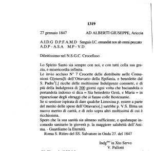 Le invio accluso N ° 7 Crocette delle distribuite nelle Comunioni G [ enera ] li dell ’ Ottavario della Epifania , e benedette dal S . Padre1 [,] ricche delle moltissime Indulgenze consuete , e di
