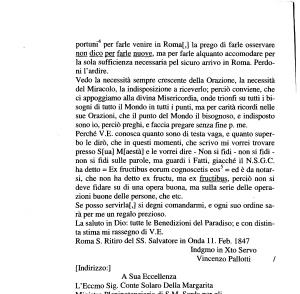 Vedo la necessità sempre crescente della Orazione , la necessità del Miracolo , la indisposizione a riceverlo ; perciò conviene , che ci appoggiamo alla divina Misericordia , onde trionfi su tutti i bisogni di tutto il Mondo in tutti i punti , ma per carità ricordi nelle sue Orazioni , che il punto del Mondo il bisognoso , e indisposto sono io , perciò preghi , e faccia pregare senza fine p . me .