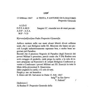 Preghi p . me : mi benedica S . Ritiro del SS . Salvatore in Onda 13 . Feb . 1847