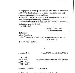 Accludo le pagelle , e libretti dell ’ Aggregazione all ’ Archiconfr [ atemita ] del Pmo Sangue del N . S . G . C .