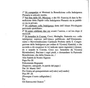 Pius PP . IX [ Prosegue il testo calligrafato :] Per