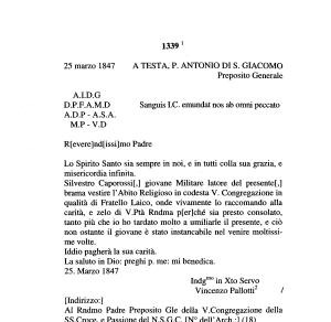 La saluto in Dio : preghi p . me : mi benedica . 25 . Marzo 1847