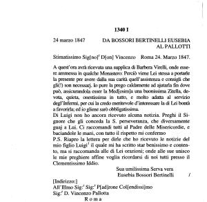 [ Sopra l ’ indirizzo il Pallotti ha scritto :]