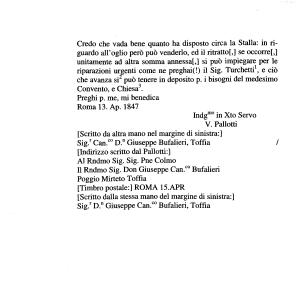 V . Pallotti [ Scritto da altra mano nel margine di sinistra :] Sig . r Can . c0 D . n Giuseppe Bufalieri , Toffia / [ Indirizzo scritto dal Pallotti :]