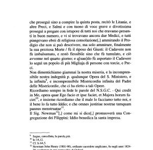 che proseguì sino a compire la quinta posta , recitò le Litanie , e altre Preci , e Salmi e con tuono di voce grave e divotissima proseguì a pregare con istupore di tutti noi che eravamo presenti in buon numero , e vi si trovavano ancora due Medici , e tutti piangevano ebrii di religiosa consolazione [,] ammirando il Prodigio che non si può descrivere , ma solo ammirare , finalmente la sua preziosa Morte / fù il riposo dei Giusti : il Cadavere non fù imbalsamato , e restò flessibile sino che fu tumulato , e ciò avvenne nel quarto giorno ; e q [ uan ] do fù asportato il Cadavere