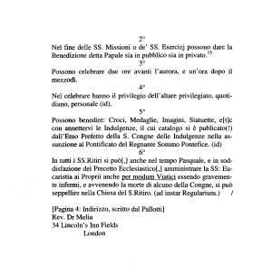 In tutti i SS . Ritiri si può [,] anche nel tempo Pasquale , e in soddisfazione del Precetto Ecclesiastico [,] amministrare la SS : Eucaristia ai Proprii anche per modum Viatici essendo gravemente infermi , e avvenendo la morte di alcuno della Congne , si può seppellire nella Chiesa del S . Ritiro , ( ad instar Regularium .) /
