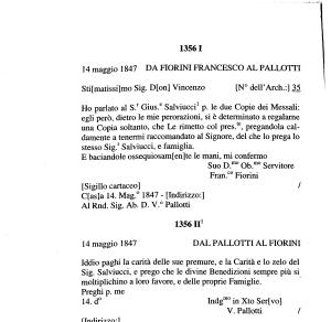 14 maggio 1847 DA FIORINI FRANCESCO AL PALLOTTI Sti [ matissi ] mo Sig . D [ on ] Vincenzo [ N ° dell ’ Arch .:] 35