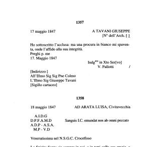 17 maggio 1847 A TAVANI GIUSEPPE [ N ° dell ’ Arch .:] 1