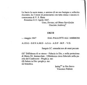 1 I due numeri in parentesi si riferiscono a quelli inseriti dal Pallotti nella lettera dell ’ Ambrosi .