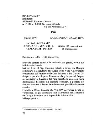 Fra tutte le Opere di carità , che V . S . Illma dovrà fare p . tale lavorazione [,] la più necessaria che si presenta nella necessità dell ’ Acqua è appunto tutta la possibile Sollecitudine .