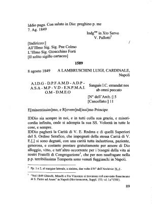1 “ Nel 1849 Ghirelli , Minelli e Fra Vincenzo si trovarono nel convento francescano di S . Pietro ad Aram ” in Napoli ( Hettenkofer , Suppl . 153 ; vd . l . n ° 1581 ).