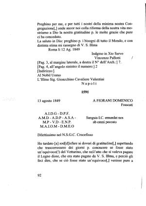 Preghino per me , e per tutti i nostri della minima nostra Congregazionef ,] onde ancor noi colla riforma della nostra vita mostriamo a Dio la nostra gratitudine p . le molte grazie che pure ci ha conceduto .