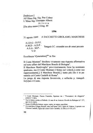 31 agosto 1849 A SACCHETTI GIROLAMO , MARCHESE