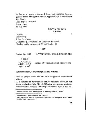 Perdoni se le ricordo la istanza di Renzi e di Giuseppe Rossi p . qualche basso impiego nei Palazzi Ap [ osto ] lici ; e più quella del