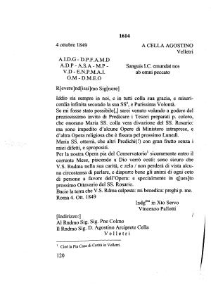 Se mi fosse stato possibile [,] sarei venuto volando a godere del preziosissimo invito di Predicare i Tesori preparati p . coloro , che onorano Maria SS . colla vera divozione del SS . Rosario : ma sono impedito d ’ alcune Opere di Ministero intraprese , e d ’ altra Opera religiosa che è fissata pel prossimo Lunedì .