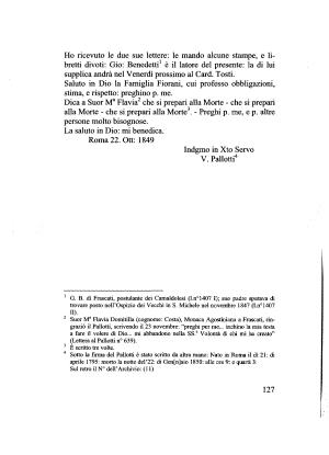 Suor Ma Flavia Domitilla ( cognome : Costa ), Monaca Agostiniana a Frascati , ringraziò il Pallotti , scrivendo il 23 novembre : “ preghi per me ... inchino la mia testa a fare il volere di Dio ... mi abbandono nella SS . a Volontà di chi mi ha creato ” ( Lettera al Pallotti n ° 639 ).