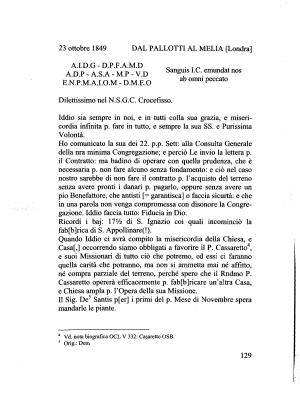 Ho comunicato la sua dei 22 . p . p . Sett : alla Consulta Generale della nra minima Congregazione ; e perciò Le invio la lettera p . il Contratto : ma badino di operare con quella prudenza , che è necessaria p . non fare alcuno senza fondamento : e ciò nel caso nostro sarebbe di non fare il contratto p . l ’ acquisto del terreno senza avere pronti i danari p . pagarlo , oppure senza avere un pio Benefattore , che antisti [= garantisca ] o faccia sicurtà : e che in ima parola non venga compromessa con disonore la Congregazione . Iddio faccia tutto : Fiducia in Dio .