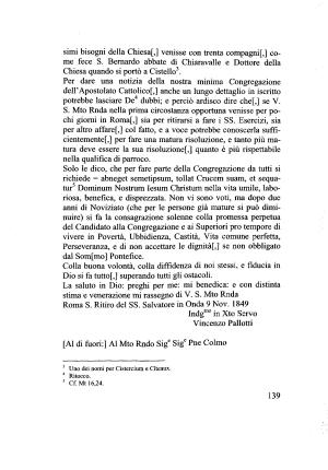 richiede = abneget semetipsum , tollat Crucem suam , et sequatur5 Dominum Nostrum lesum Christum nella vita umile , laboriosa , benefica , e disprezzata . Non vi sono voti , ma dopo due anni di Noviziato ( che per le persone già mature si può diminuire ) si fa la consagrazione solenne colla promessa perpetua del Candidato alla Congregazione e ai Superiori prò tempore di vivere in Povertà , Ubbidienza , Castità , Vita comune perfetta , Perseveranza , e di non accettare le dignitàf ,] se non obbligato dal Somfmo ] Pontefice .