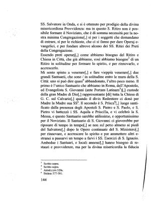 SS . Salvatore in Onda , e si è ottenuto per prodigio della divina misericordiosa Provvidenza : ma in questo S . Ritiro non è possibile formare il Noviziato , che è di somma necessità per la nostra minima Congregazionef ,] sì per i soggetti che domandano di entrare , sì per le richieste , che ci si fanno per dare Operaj e- vangelici , e per fondare altrove alcuno dei SS . Ritiri dei Preti della Congregazione .