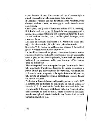 Un tale Rescritto assoluto , pieno , e senza remissione a veruna autorità sub / altema frutterebbe moltissimo poiché animerebbe tutte le persone facoltose e primarie , e mediocri , che sono in Velletri [,] per concorrere colle loro limosine all ’ incremento della pia Istituzione .