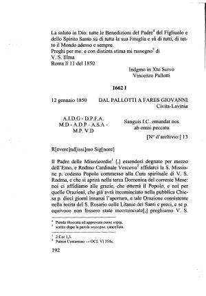 12 gennaio 1850 DAL PALLOTTI A FARES GIOVANNI Civita-Lavinia