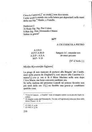 La prego di non mancare di portarsi alla Brigata1 dei Carabinieri nella piazza de Zinghari (!); cosi ancora alla Caserma Cimarra12 [,] ove p . ora si fa il Mese Mariano nella sera dopo l ’ Ave Maria , ma forse converrà cambiare ora .
